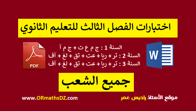 السلام عليكم ورحمة الله و بركاته، مرحبا بكم متابعي موقع الأستاذ راحيس عمر ORmathdDZ، في هذا الموضوع نقدم لكم مجموعة ضخمة من نماذج اختبارات الفصل الثالث للتعليم الثانوي بجميع مستوياته.
